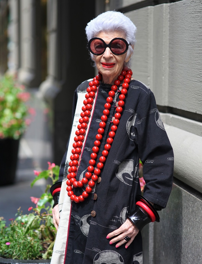 Я стала за собой замечать, что люди, так сказать, в возрасте вызывают у меня гораздо больше восхищения и вдохновения, чем сверстники. Когда я вижу энергичных бабулек и дедулек - прямо летать хочется. Может быть многие знают Айрис Апфель - жительницу Нью-Йорка - которая в свои 93 года является иконой не только стиля и моды, но и в общечеловеческом плане как пример жизнелюбия и неугасающей энергии. Что вдруг я о ней вспомнила? Мы с Леной на днях сходили на фестиваль документальных фильмов и посмотрели фильм "IRIS" как раз о ней, об Айрис. Правда, пока фильм существует в английском варианте, но если найдёте его - очень советую посмотреть. Режиссёр неустанно следовал по её пятам в течение нескольких лет и дал возможность окунуться в её мир, вдохновиться и немного пересмотреть взгляды на свой.